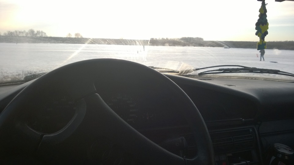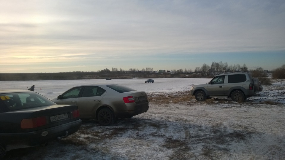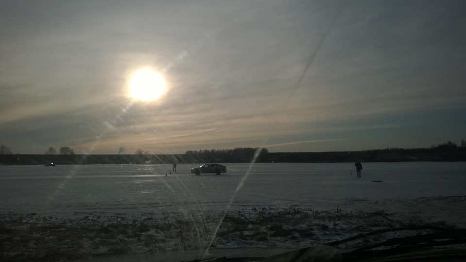 Оставив все эти проблемы позади, дернул на лёд. И понеслась! :) Наворачивал круги по льду, уходил в занос — шикарно просто. Машину старался не нагружать очень сильно, всё-таки она не спортивная. Просто ловил кайф. Непередаваемые ощущения :) После десятка — другого кругов давал машине отдохнуть, охладиться. Обороты потому что держались большие, колодки и подвеска работали на износ.