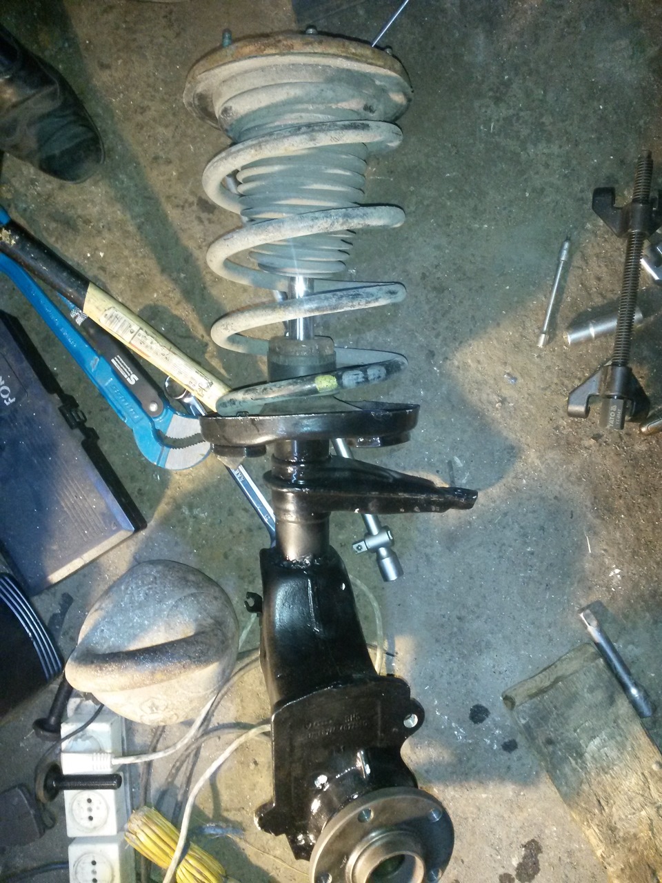 Здесь относительно все просто, кулаки с новыми подшипниками и ступицами с нужным вылетом уже готовы, осталось всего несколько действий: