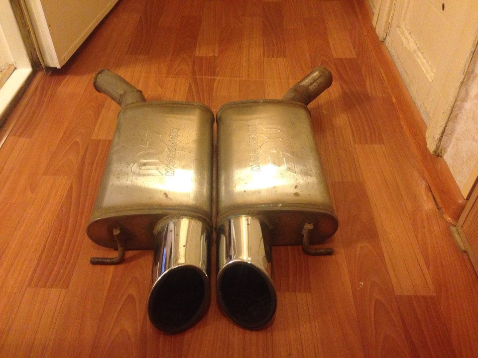 В этот раз купил бочки от magnaflow немного б/у пару месяцев, так как хочется чего-то необычного, на всех своих машинах я делал выхлопы на компонентах от mg race(фирма оч хорошая как по качеству так и по звучанию)