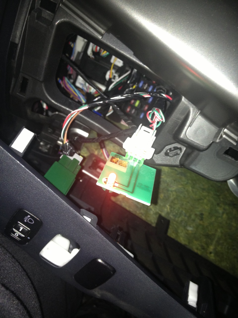 Для тех у кого есть AFS нужно делать минимум телодвижений — отрезать красный провод, идущий из колодки кнопки AFS в районе ЕТАКСА и либо вставить его в пин, либо прикрутиться к 14 проводу. Все остальные действия, которые я описал выше делать не надо :)