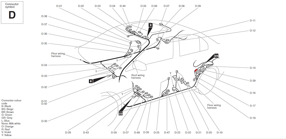 Судя по электросхеме этот провод идет от самого багажника и там выводится на колодку внешней кнопки его открывания. Проверяем нашу догадку замыканием его на массу (крепежный болт Етакса) и радуемся, что все работает.
