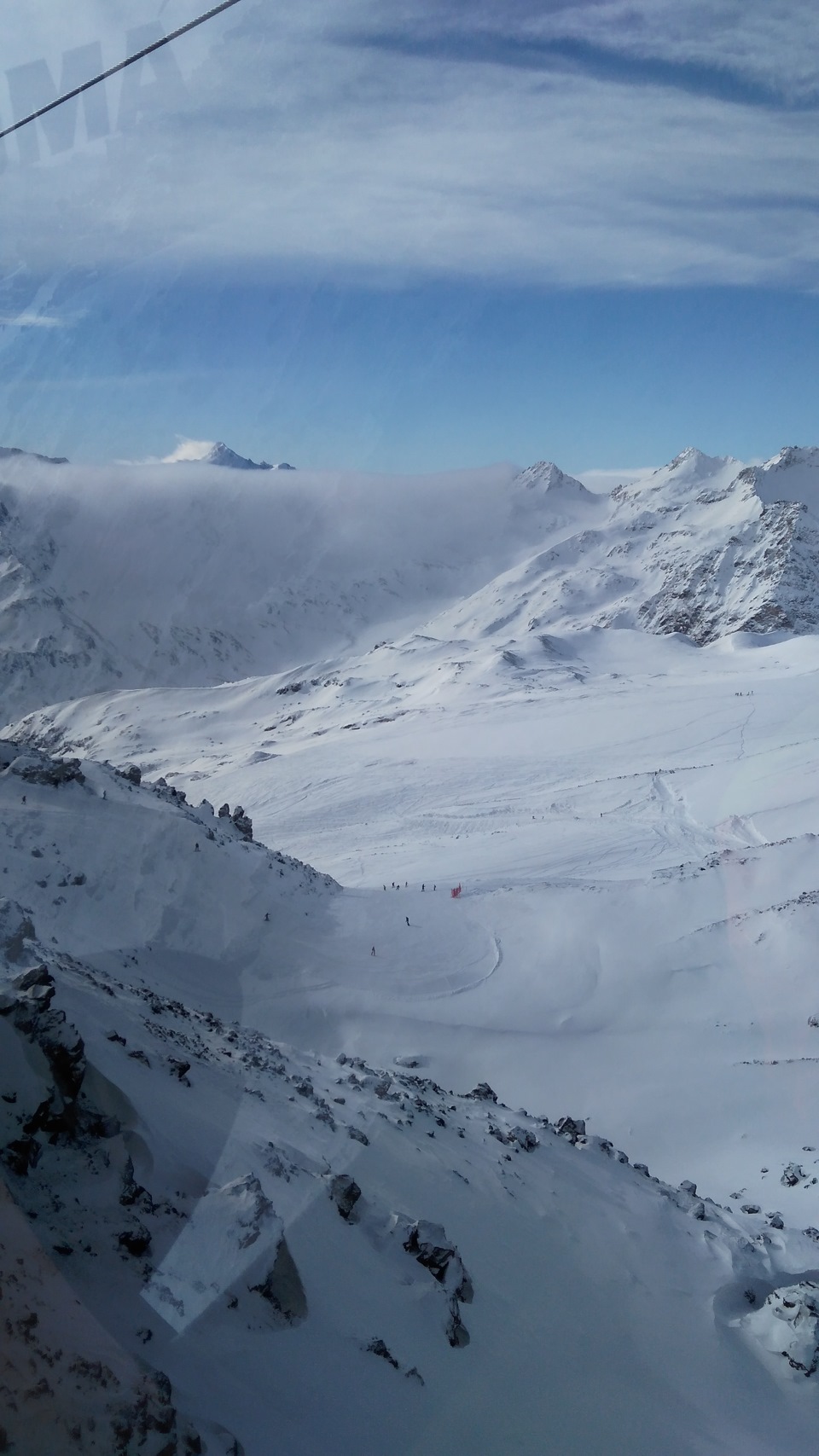 Мы берем скипассы на 3 очереди и едем наверх. Самая верхняя станция. Гара-Баши. 4000м.