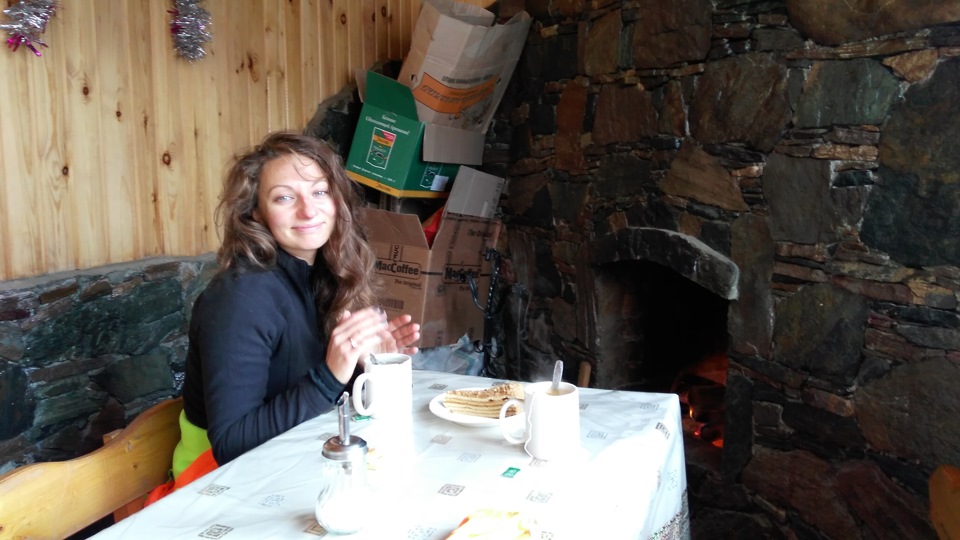 Камин. Трещат дрова. Людей нет. За окном воет ветер. А мы сидим, сняв свои боты, греем ноги и пьем вкуснейший чай с облепихой. В местных кафе вкуснейшая еда. Правда сильно пахнет готовкой. И после кафе одежда имеет стойки неприятный запах. Но это мелочи. Ведь только здесь можно съесть чебурек размером с поднос. Удивительно вкусный и сочный.