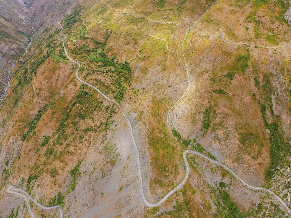 Одна из самых красивых дорог в Таджикистане с высоты птичьего полета.