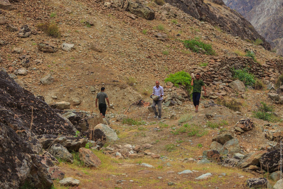 2. Утром пришли местные собирать камни для постройки сарая. Разговорились с парнями. Они рассказали, что дети учат русский язык в школах, а с сентября 2015 им добавили больше предметов на русском языке. Несмотря на ограничительную миграционную политику России, простые люди все-таки надеются на дальнейшее сближение наших стран. И, как стало понятно из разговора, у старшего поколения присутствует ностальгия по СССР.