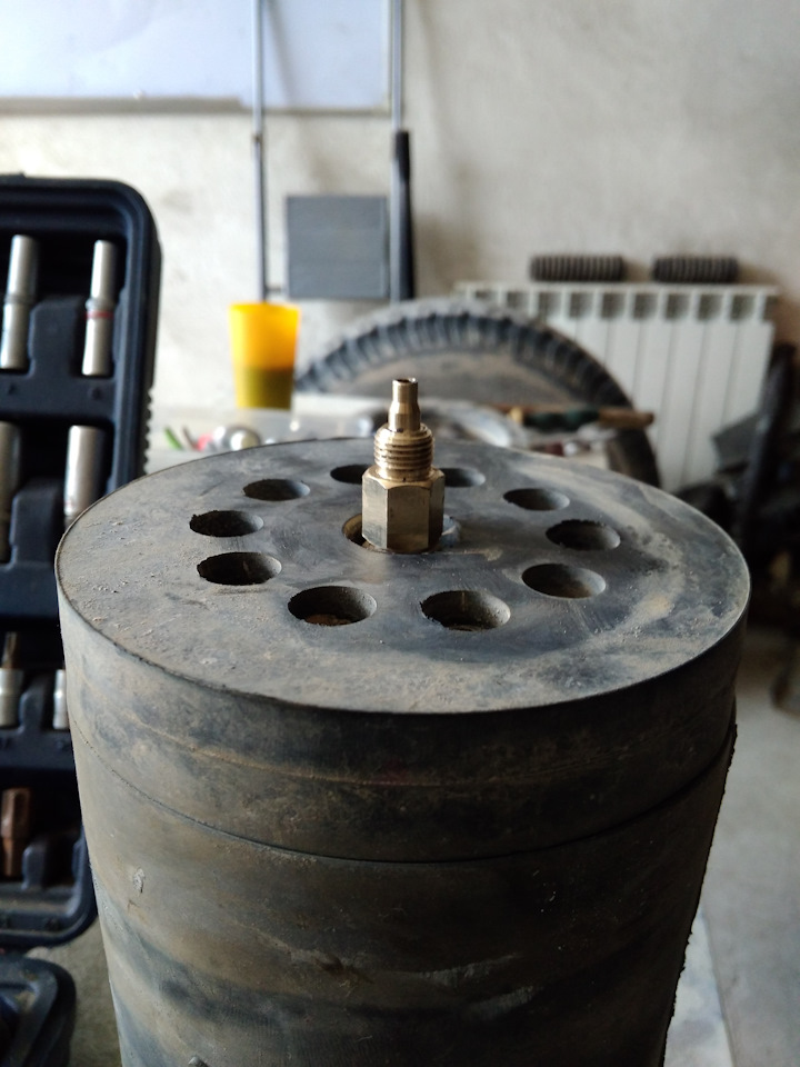 Переделка из 3х зачем то штуцеров в один . Первоначально в заднюю подушку накручивается штуцер в который вкручивается ниппель, на который накручивается ещё один колпачок который этот ниппель задавливает … Бред … Токарь выточил один штуцер, заменяющий все эти кружева, потому что зачем там ниппель, который зажимается ещё колпачком, что бы ниппель был открыт, знает только, … да никто не знает …В общем при установке новых штуцеров всё стало здорово . но вот только расслоились они, печалька, тема хорошая . Тем более я всё сделал ( по компрессору включается с кнопки в салоне, поставил 6 реле на включение на спуск, переднего контура, заднего контура ), в салоне поставил кнопки спускать качать . также очень понравились электронные манометры . буду эту тему каачть дальше . но только не с одноразовыми подушками, хотя мог бы получить 1000 руб от них, за хороший отзыв .