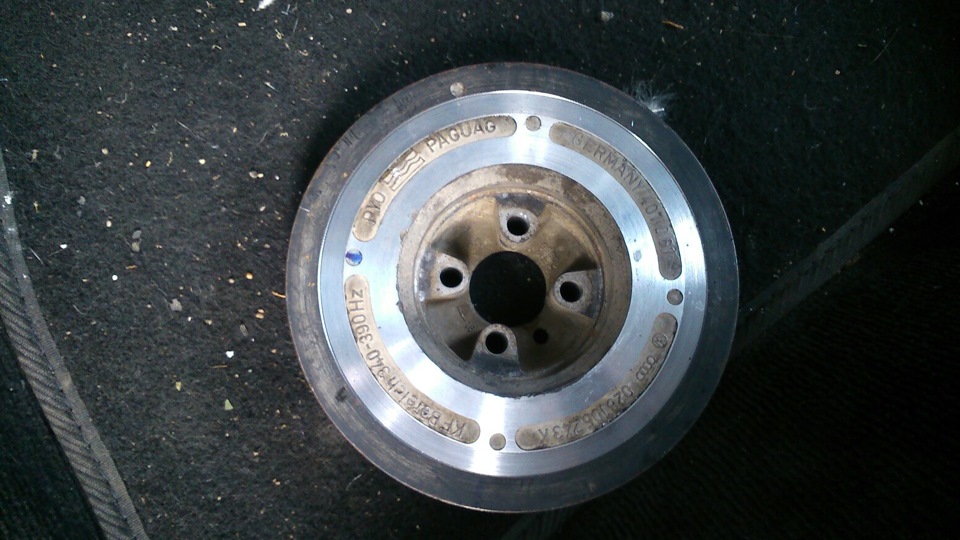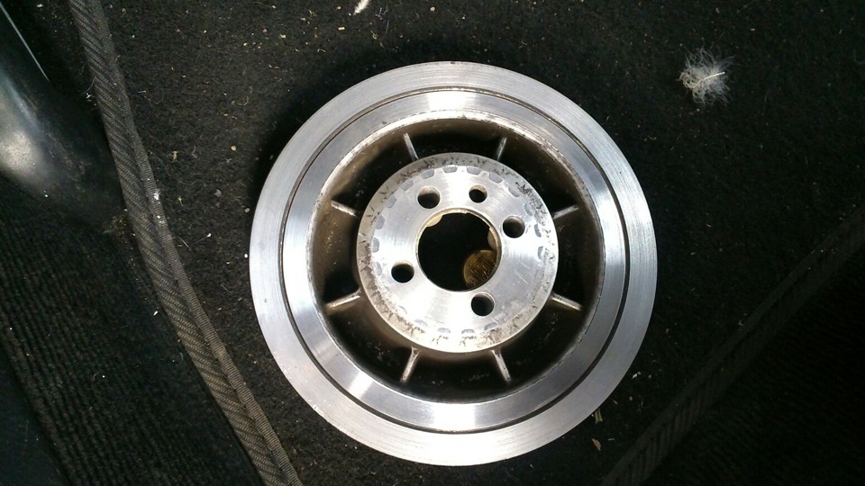 Всем привет! Хочу рассказать как меня мучал шкив демпферный на к/валу. Началось это где-то года 2,5 назад с банального писка вроде ремня исключительно на холодном двигателе. Ну нагрелся да поехал и пришла зима. Ну первая зима поменял ремень генератора и дудки утром пищит, ну десятть минут попищал да поехал. Менял ремни каждых пару месяцев искал хороший ну gates был самый тихий. Пришла весна писк уходит почти сразу — тепло. И вот следующая зима писчит постоянно на хх, мука в пробках стоять. Давай по мастерам ездить все руками разводят. Вообщем надоело менять ремни начал искать сам, менял генератор не то, купил новый шкив генератора отцентровал, не то, торцанул шкив помпы не то, решил уже помпа последняя, и при замене снимают демпферный шкив, случайно его подняв товарищь слесарь обнаружил что клей на резине не держит металл а сам демпфер целый. Хвала мастеру нашел причину еду беру шкив фирмы swag ставим уезжаю красота ничего не пищит но чтото не то открываю капот ремень перепрыгнул на ручеек, давай ругаться ставим на место заводим ремень опять прыгнул, и шкив мотыляет я в шоке ведь уже шпонку срезало изза биения шкива. Иду в цех на станок шкив биение 5мм брак просто Жора беру другой 3мм и так много сплошное .авно ну думаю возьму первый swag и буду выравнивать благо пороизводственнык мощностя есть. И тут мой Папа посмотрев сказал щачем деньги тратить тот демпфер нужен этому двигателю как козе баян выжигам в старом резину; точим втулку, прессуем и вуаля 2х летняей муке конец. Так что если у кого есть такая проблема теперь знайте где искать