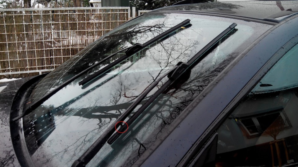 Так лежат на стекле (красным показано место, откуда был снят ограничитель перемещения каркасной щетки, ибо упирался в новую и мешал чистить).
