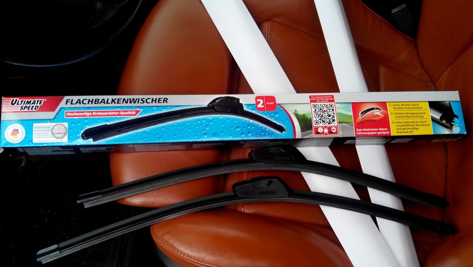 С приходом зимы в наши края и неожиданным выпадом снега стало ясно, что старые щетки Бош уже совсем не Бош, а так, елозит что-то… Да и хотелось бескаркасные попробовать. В итоге, в Лидле были куплены такие:
