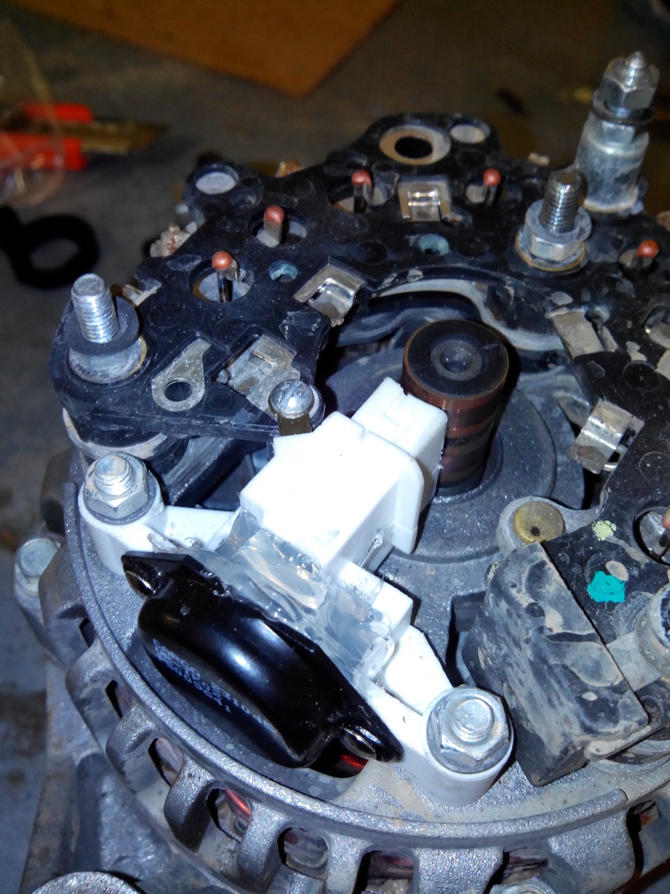 По следам www.drive2.ru/l/8588418/ заменил регулятор напряжения, каталожный № 231045.