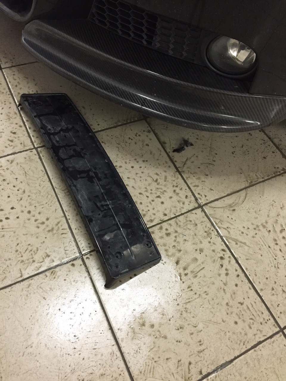 Так же решил с переднего бампера убрать так называемый подиум под номер, чтоб рамка в плотную прилегала к бамперу