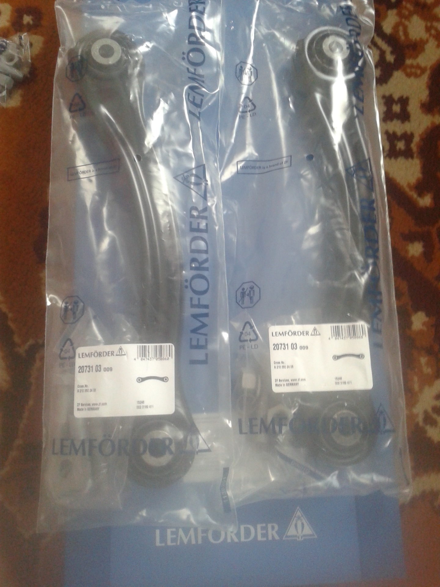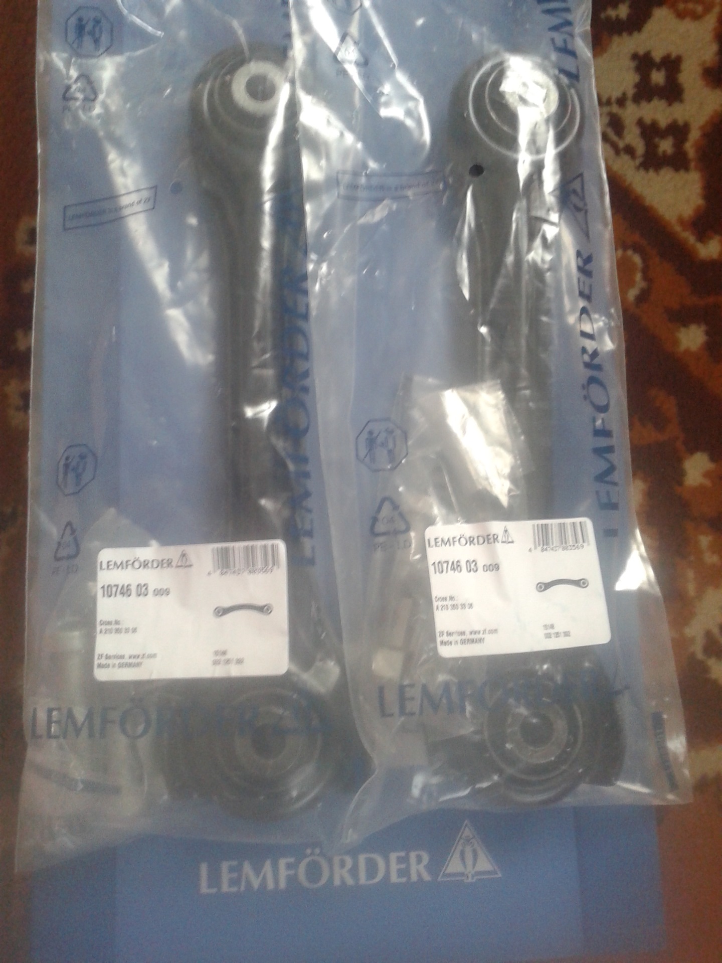 Этим злым гением (мною) было решено… заменить ВСЮ подвеску! Итак, встречайте: гений моего маразма – комплект задней подвески Lemfoerder! Жир, да?) Да-да! Я решил усластить старика новой, с#ка, подвеской! Только лишь на пружины и амортизаторы пока нет денег. Но и их я приобрету. Причём как! По оригиналу! Буду подбирать по ВИНу, чтобы старик, наконец-то, стал мягким, как подобает!