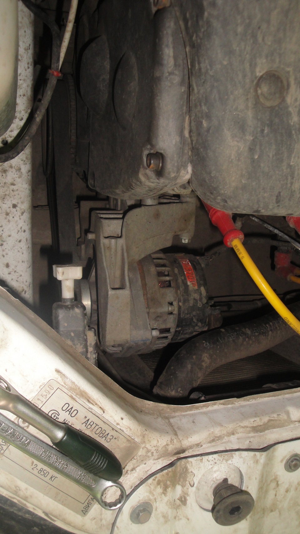 Ну так вот. Одной из особенностей гранты является косяк с генератором — нет механизма регулировки натяжения, а ремень, якобы, самоподтягивающийся. Но на самом деле он перетягивается и разваливается подшипник.