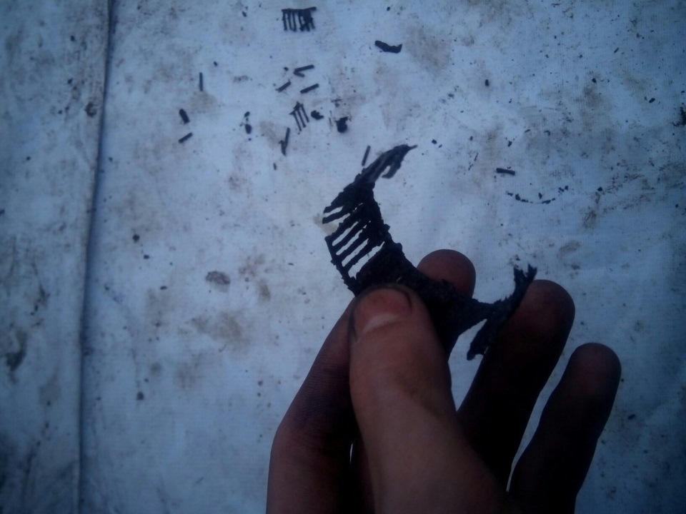 После того как рычаг с пальцем мы выбили, срезаем болгаркой приваренную железку, зачищаем пальцем и выбиваем его из рычага.