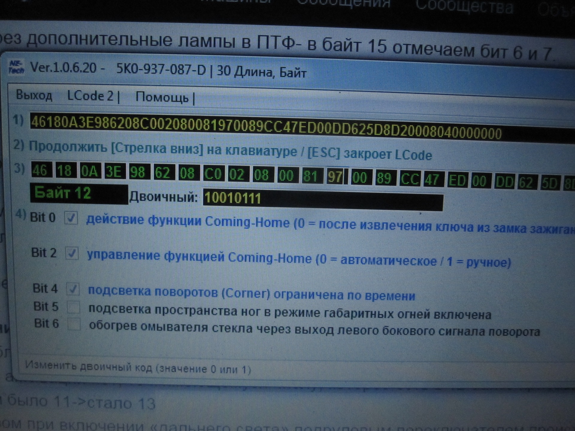 — Отключение "ДХО" (DFL/TFL) при включении подрулевым переключателем "Дальнего света" — 9 блок –> кодирование ->длинное кодирование -> в байт 12 активируем бит 1