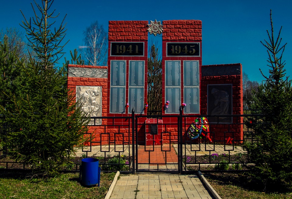 Раннее весеннее утро, делаем остановку для посещения Братской Могилы на выезде из деревни.