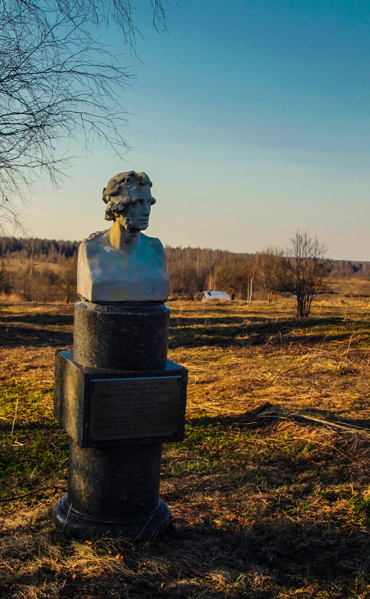 Осматривая окрестности, внезапно на нынешней окраине деревни, обнаружили памятник Пушкину.