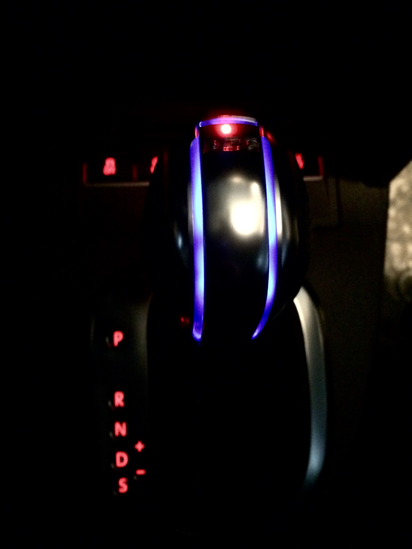 Смотрится круто, но мне почему то кажется, что синяя подсветка ручки инородно смотрится со всей красной подсветкой салона, не?)
