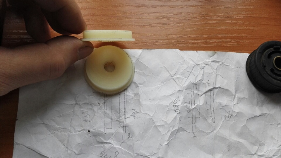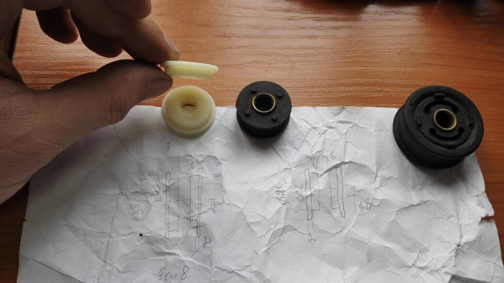 В принципе меня все устраивало в мое кпп все включалось без проблем но не было скажем так четкости.И как то просматривая записала на Драйве не вспомню уже у кого в бортовике наткнулся на запись о том что, при замене резинок на тросах кпп. Со стороны самого кпп появилась большая четкость, и убрались люфты на самой рукоятке переключения.Но к сожалению не было чертежей и размеров самих заготовок так как, я снял мотор по причине его скоропостижной гибели мне и карты в руки.Я обратился к моему знакомому токарю Володе, и он любезно согласился помочь мне и предоставил размеры заготовок не только для меня но и для моих подписчиков и читателей.Заготовки были изготовлены из капролона, и установлены на свое место за что большое Спасибо Володе.После установке на рукояти появилось не большое усилие, но это не было приятное усилие дающие лучшую четкость при переключение в дальнейшем планирую поменять резинки на самом корпусе рычага переключения ну конечно же с размерами и чертежами я с вами поделюсь.