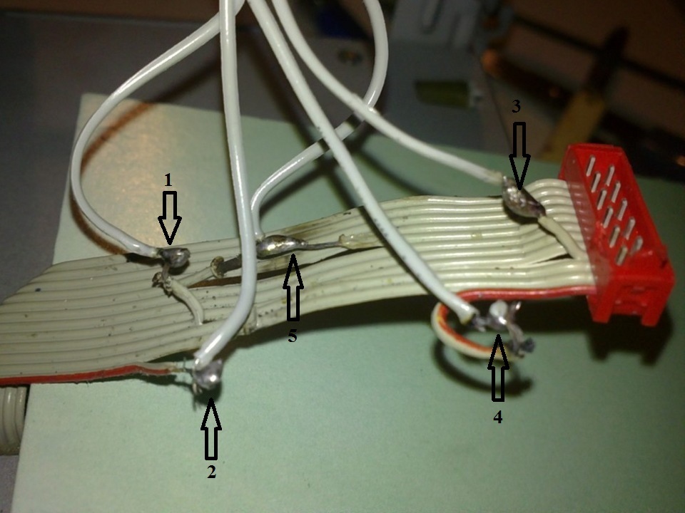 Магнитола работает, единственное заедает иногда CD-чейнджер (об этом Сергей меня предупреждал и претензий к нему нету)! Изначально было задумано внедрять aux) ну что же, информации в интернете полно, тем более уже имеется опыть по внедрению AUX в такую магнитолу(другу устанавливал) и сейчас учел все моменты! Купил все необходимое (провода, термоусадочный кембрик, разъем для AUX на 5 контактов)! Процесс понятен по фото (думаю всем уже эти фотки знакомы:)) Единственное на что хотел обратить внимание, так это на то как надо припаивать провода к разъему и к шлейфу, дабы потом не переделывать все заново! На фотках стрелками с цифрами указано куда какой провод припаивать! Под цифрами 1 и 2 сигнал пойдет с флеш-насителя на усилитель магнитолы, а когда извлекаем штекер из разъема, 1 контакт смыкается с 3, а 2 с 4! Это позволяет нам сохранить функционал самого CD-чейнджера! Также прилагается и схема подключения!