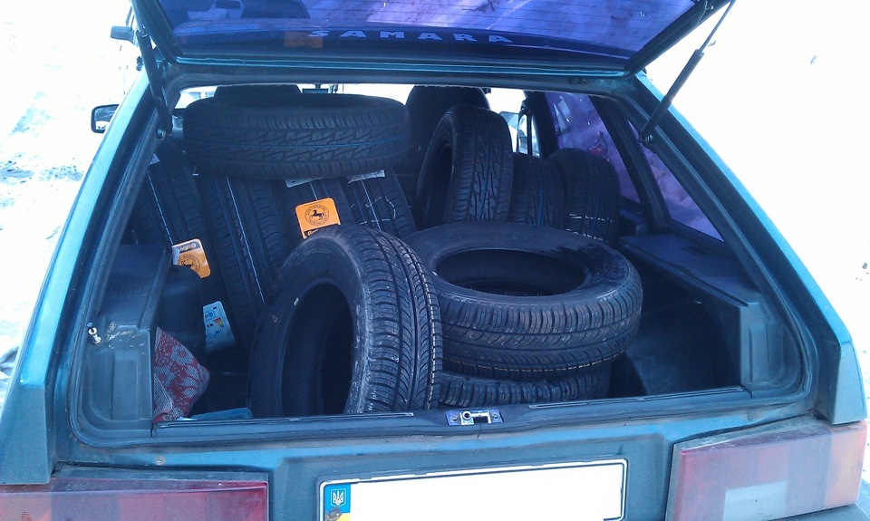 Ребята, подскажите, может кто пробовал?.. Сколько шин R13 влезет в девятку? (только заднее сиденье и багажник…) Необходимо 4 комплекта уместить, получиться?