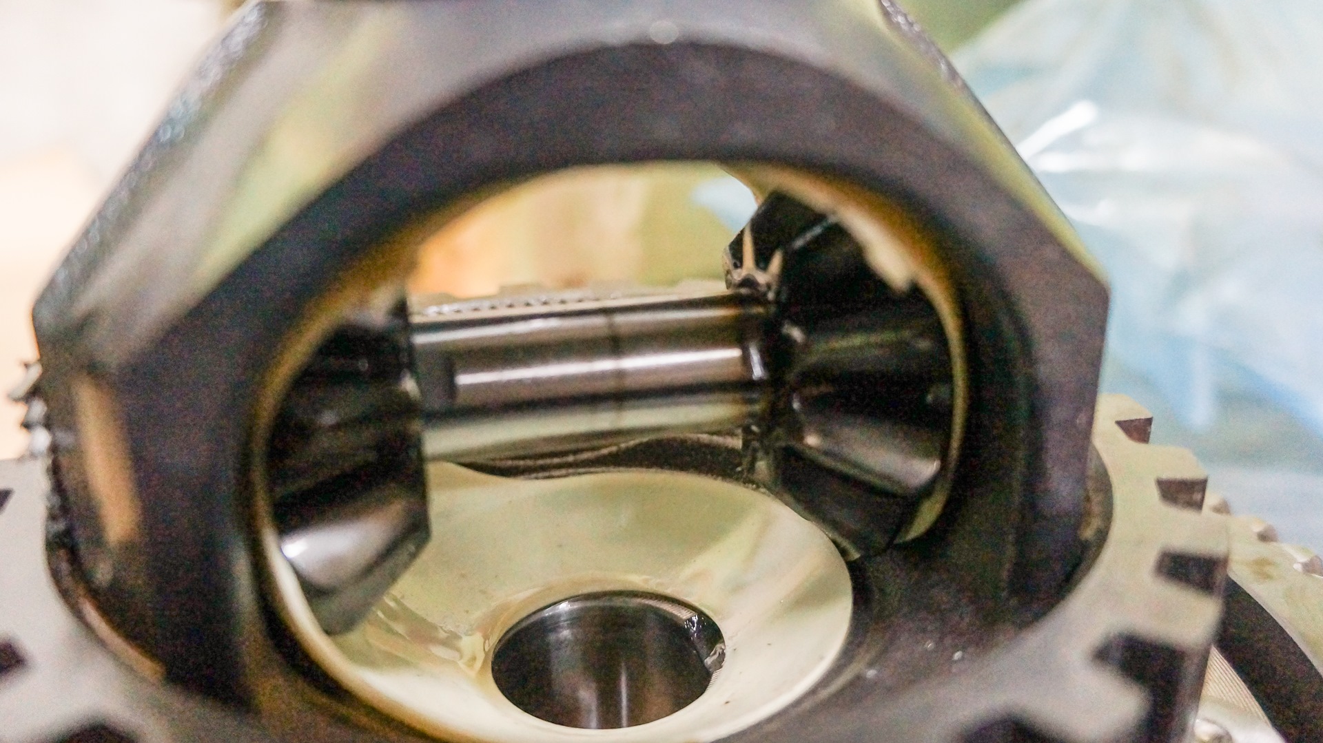 Из нового дифференциала Новожилов достал ось сателлитов и отдал на проточку. Теперь она с двух сторон плоская, и проточка составляет всю глубину сателитов, а значит никогда не закипит и не заклинет. После прихода з/ч, коробку собирали в обратном порядке.