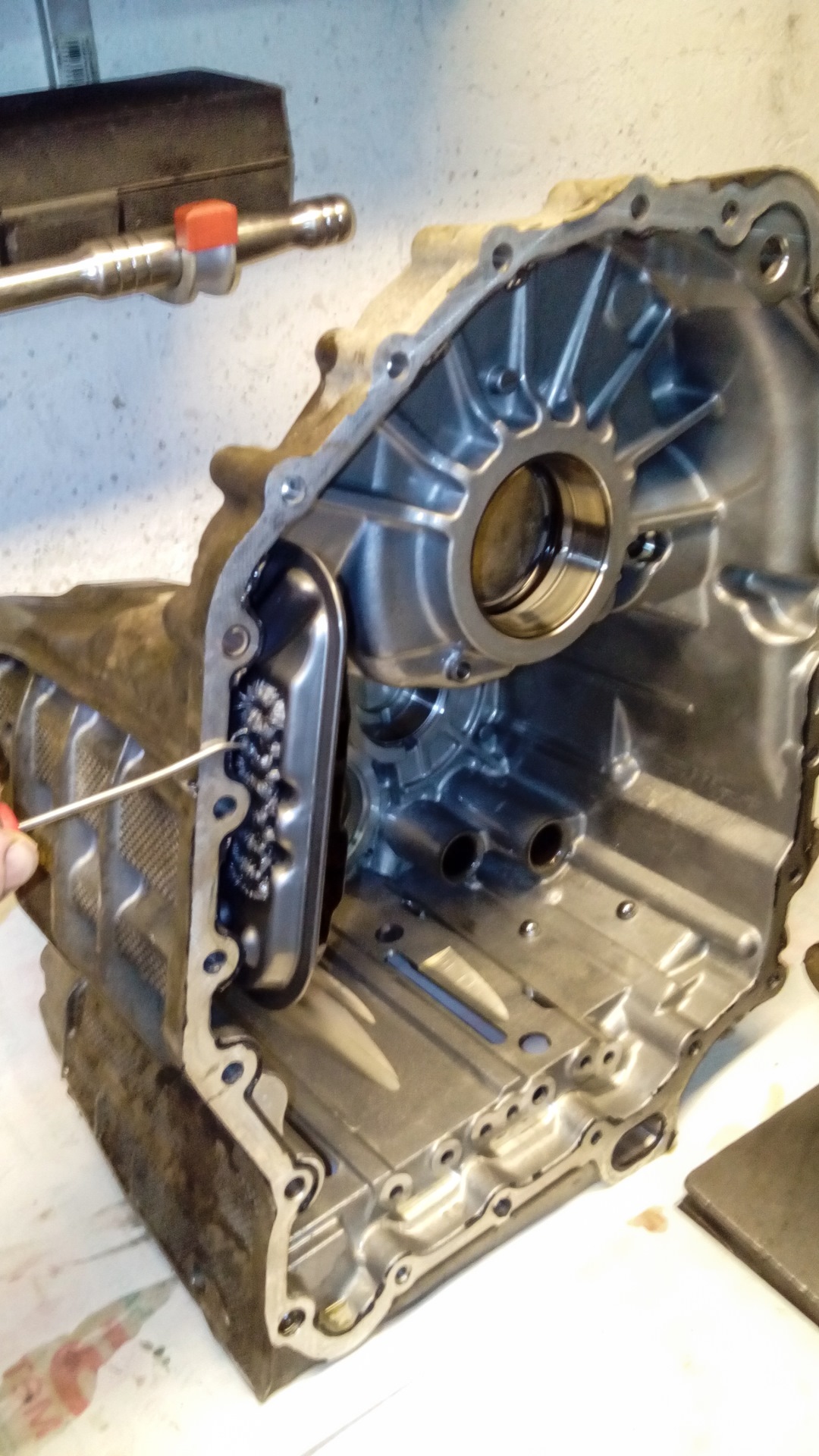 Спустя два дня мне лично Новожилов прислал огромный фотоотчет по дефектовке коробки. Здесь видно, как дифференциал по сути разорвало осью сателлитов, и стружки было не просто много, она была везде.