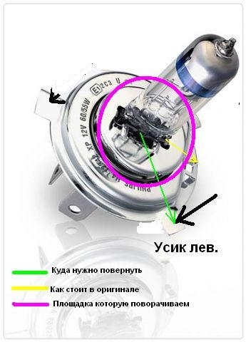 А поворачивать нужно лампы в обеих фарах, одинаково? (Не заморачиваясь как они установлены, просто ~ на 30 градусов, до усика как на рисунке?)