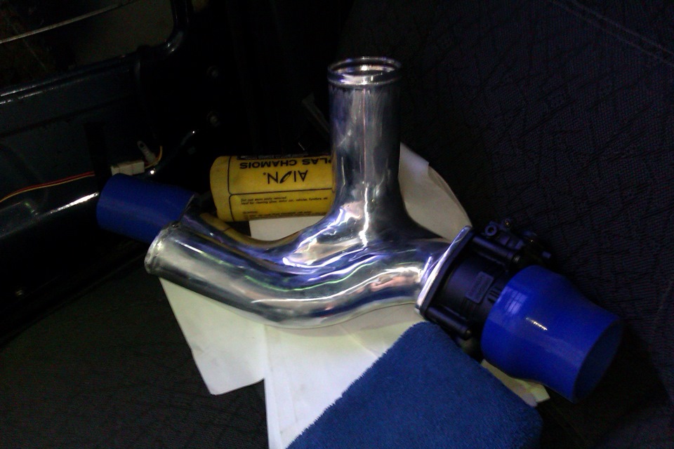 Заслонка на выпуске открывается пневматически, от давления большой турбины.Клапан и заслонка от двигателя 2JZE.Клапан на впуске подпружинен, открывается тоже от давления большой турбины.