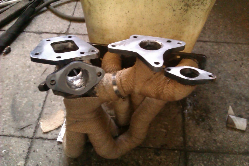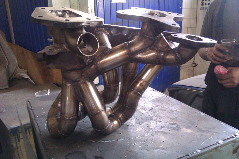 Установка новой коробки диктовало свои правила, впускной и выпускной коллектора уже не вставали под такое расположения двигателя.Да и крутить колес стало на двое больше
