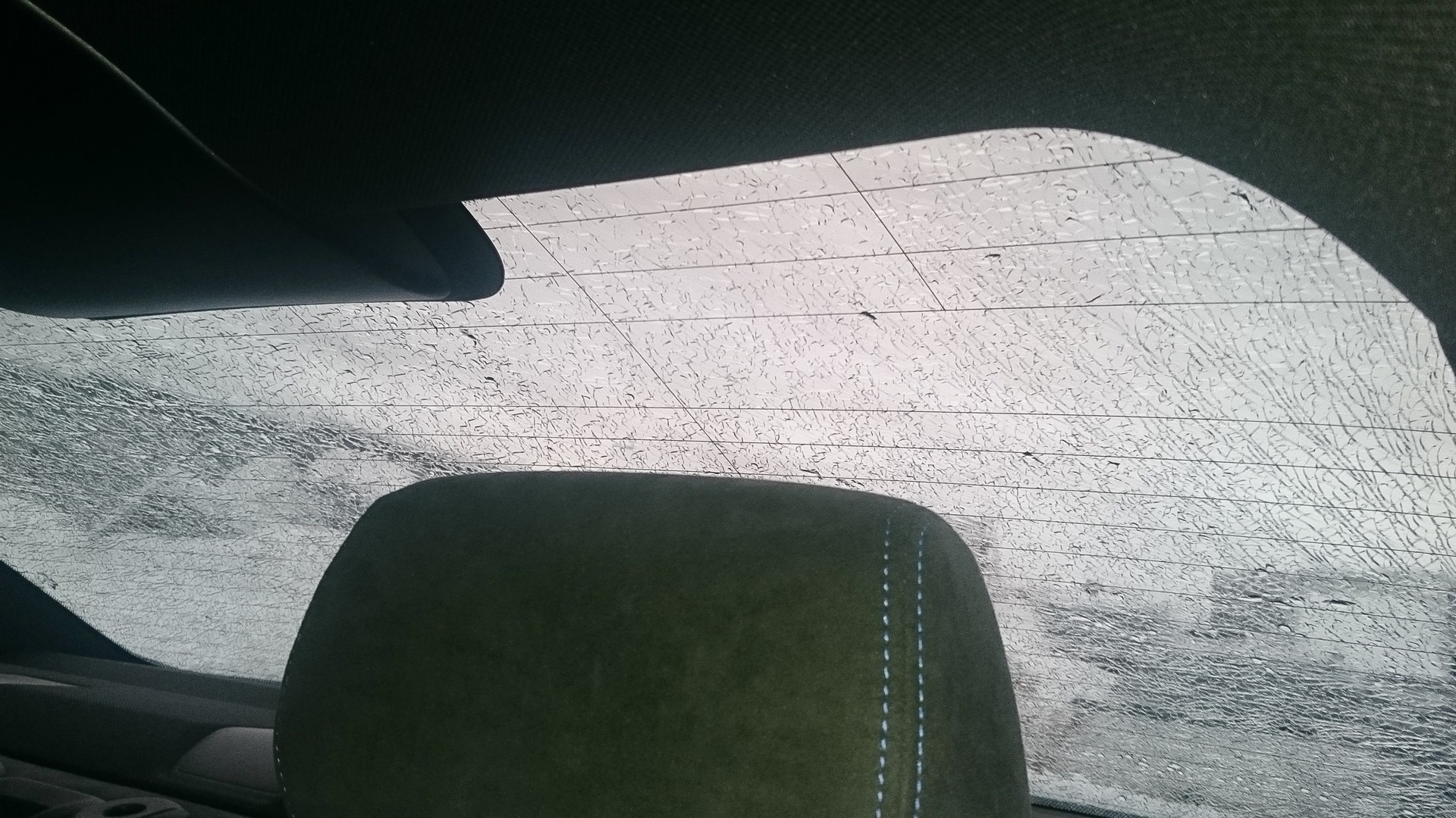 Когда и что именно произошло не понятно. Каким-то чудесным образом, пока машина стояла на улице стекло просто рассыпалось и держалось лишь за счет тонировки.