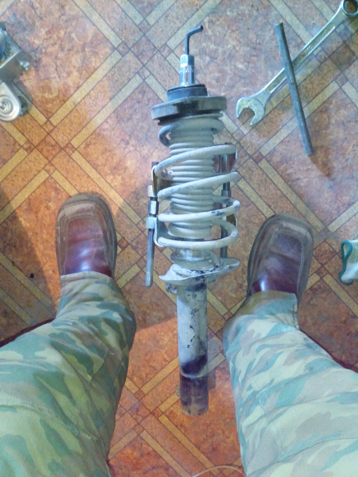 Тоесть если снять пружину со стойкой он просто раскрывается в руках? Если я правильно понял… его держет в собранном состоянии пружина, и есть шанс если ему край, при снятии пружины со стойкой он может разлететься