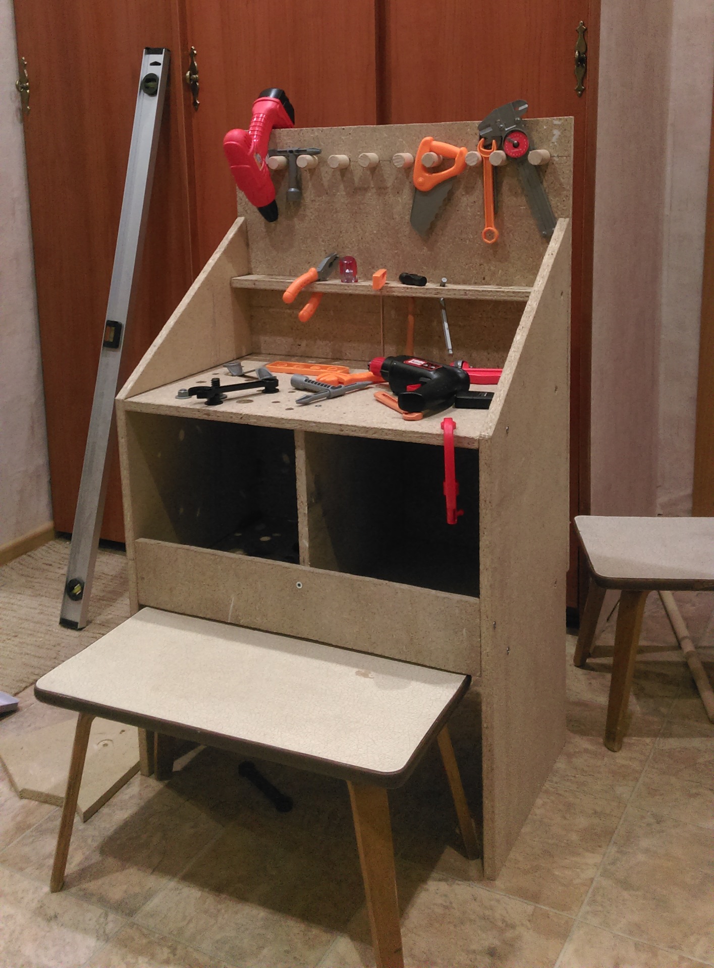 П.С. Мужской половине группы детского сада, в которой воспитывается мой сынишка, смастерил верстак на 23 февраля.Детям очень понравился мой подарок.