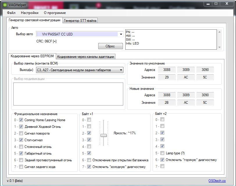 Кстати, ранее запрограммированный мной режим работы задних габаритов на СС в качестве стоп-сигнала был проведен без манипуляций с 18 байтом — исключительно правкой значений ЕЕПРОМ!