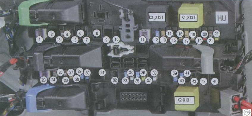 11 (25 А) — обогрев заднего стекла. Если перестало отпотевать заднее стекло или обогрев включается только на несколько секунд, проверьте также предохранитель 18 в этом блоке и реле К3_Х131 в блоке под капотом.