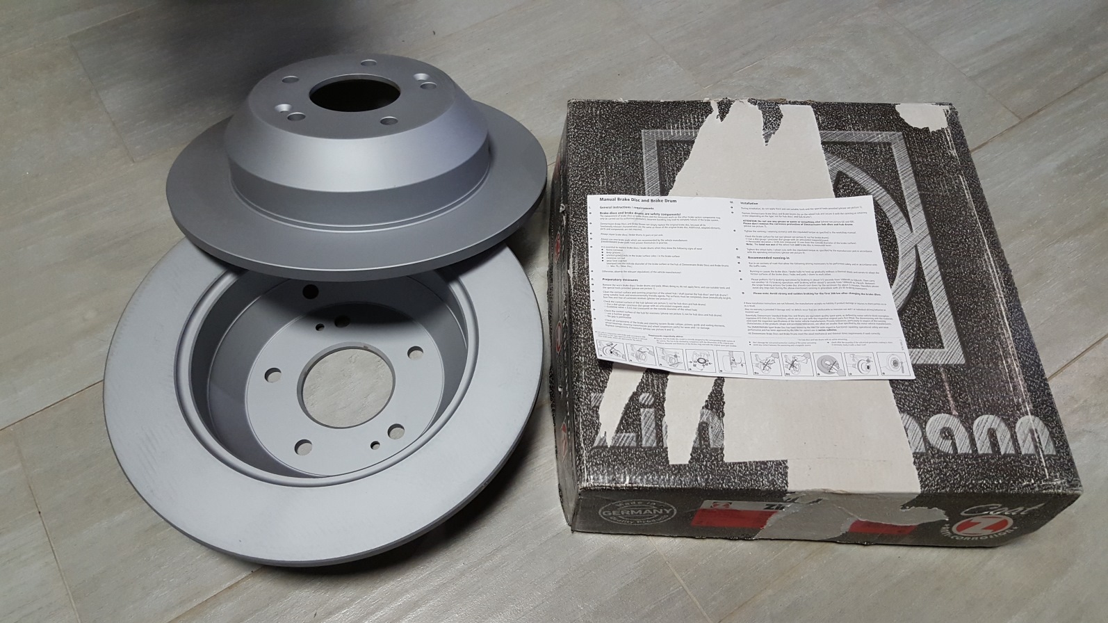 Привет всем! Решил я произвести ревизию тормозов! Ездить ещё на тормозных дисках и старых колодках можно было бы, но я люблю что бы в машине всё было чин чинарём! Выработка на дисках уже не маленькая, так что не захотел ждать сюрприза. Диски и колодки приобрел фирмы Otto Zimmermann. По чему Zimmermann? Не знаю я конкретного ответа, просто понравилось название и Немецкое качество тоже сыграло свою роль, да и мой друг Андрей мне сказал что это очень хорошие запчасти, а ему я доверяю и всегда советуюсь с ним!))) Цены правда каки-это на них космические, но я нашёл по привлекательной цене. Если честно то думал лажа случится, думал отказ придёт, а нет всё приехало! Колодки ножника взял оригинал и не зря их прозапас взял, когда сняли диски, накладки на колодках ножника были оторваны, так что вовремя поменял!