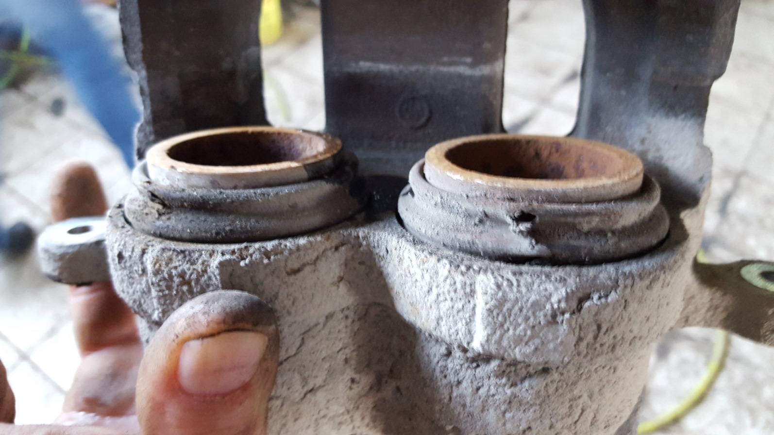 Решил так же поменять всякие там резинки на супортах, а так же направляющие и опять же не зря заранее купил, как в воду глядел, две резинки-пыльника на переднем суппорте были порваны, с дырками, но коррозия ещё не успела добраться до поршней. Купил смазки 08887-80609 а также PFG 110 для направляющих и смазку 08887-01206 для цилиндров и манжет. статья про них здесь . Ещё была медная смазка в баллончике, ей обрабатывали ступицы и ещё в некоторые места наносили! Много читал про разные смазочные материалы, но остановился на этих, мастеру который делал, смазки понравились, короче одобрил!))