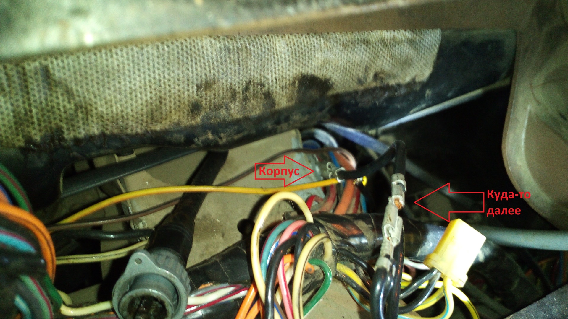 3. Подключаем провод массы под приборной панелью вместо массы с реле стартера старого замка: