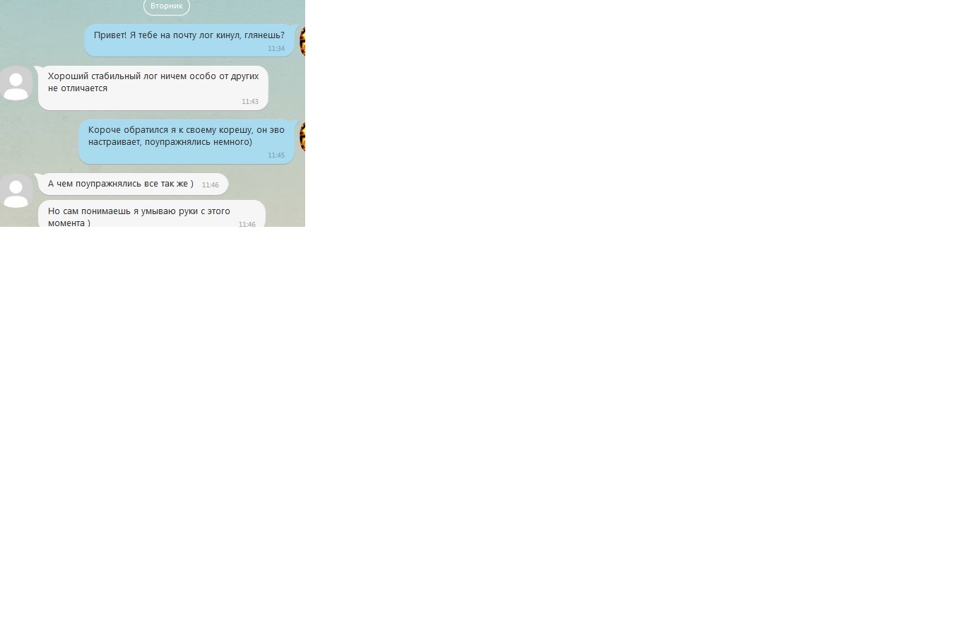 Что там кто домыслил? Или сам запутался))) Более того, я как честный человек ему(Льву) отослал лог того что в итоге у Игоря получилось, в ответ на что получил- хороший лог, ничего интересного и ничего нового и тд, Однако Интерес всё же проснулся). И это, Лев, нахрена блокировать если хочешь чегото нокапать, или ты наверное всё же хочешь чтото закапать)