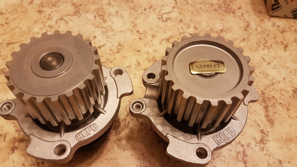 Не суть, изменения в конструкцию внесли, не подделка, тоже самое с комплектами ГРМ, Гейц, например може подшипники менять там, разных фмрм, спрашивал напрямую у них, они корче все изменения вносят, и не обязаны нас уведомлять, но цель обычно одна, снижение себестоимости, но жалоб пока не видел по помпе и последствий кавитации с ней тоже. Причем второе возможно от некачественного ОЖ Как пример www.drive2.com/l/3248505/