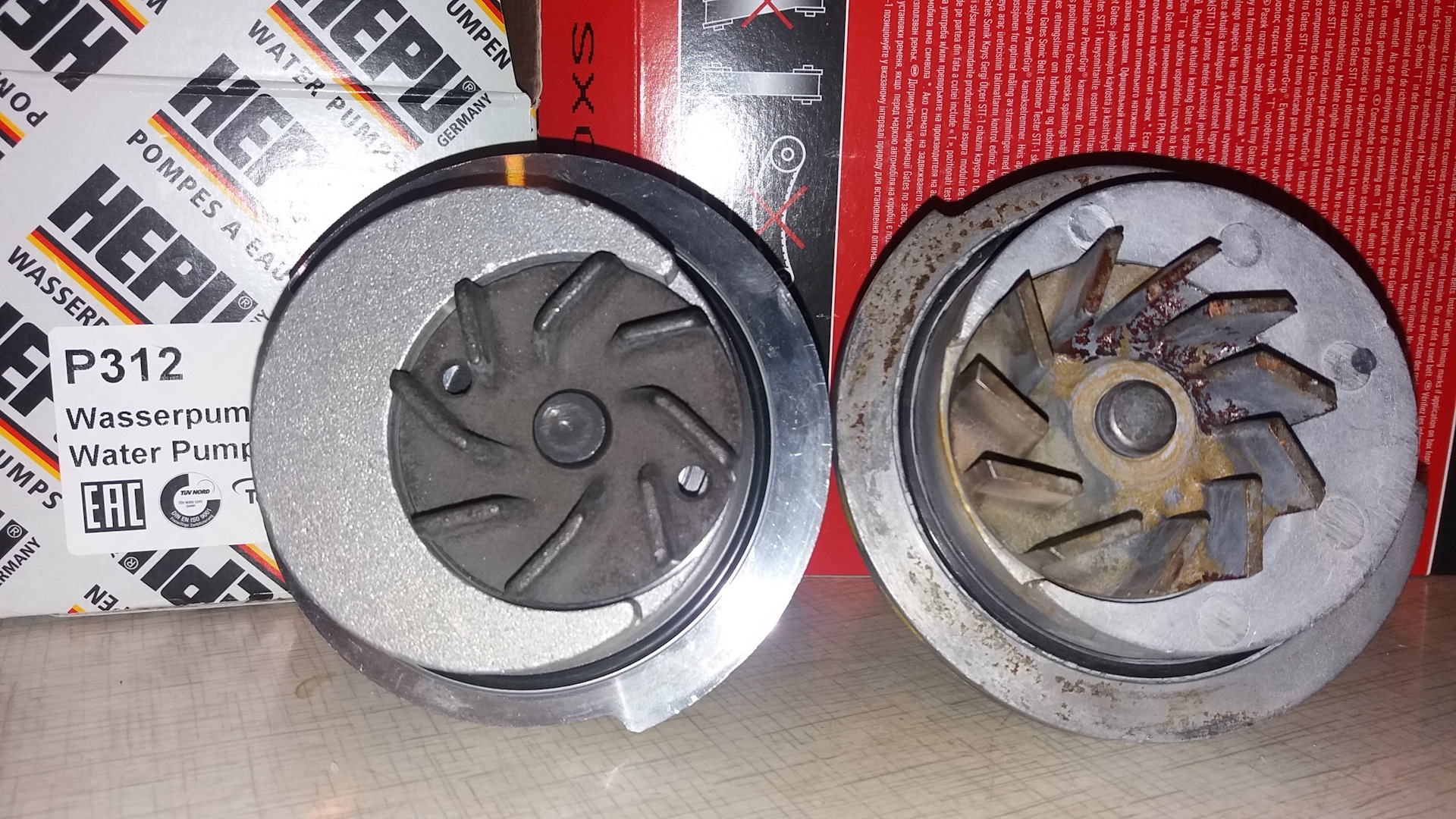 На фото одна помпа HEPU P793 на втором HEPU P795, крыльчатки разные, так и должно быть и автомобили разные, они не взаимозаменяемы, экспертиза блин)