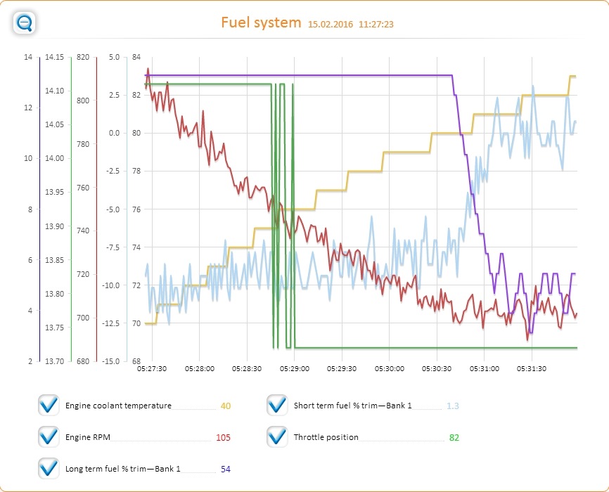 Для начала я решил записать логи с основных датчиков ДВС, чтобы получше разобраться в том, как компьютер (ЭБУ) управляет этой железякой.