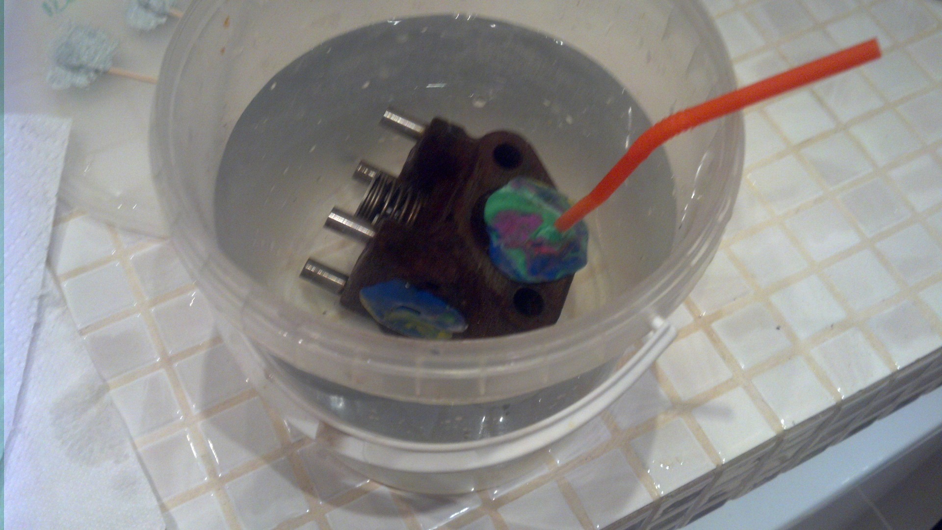 Кстати, на фото эпик фэйл — трубочка вставлена не в то отверстие. Я дул в дно закрытого клапана после его отмачивания и чистки. Пузыри не пошли, и я решил, что чистка чудесным образом помогла. Я даже потратил энное время на то, что притёр клапан.