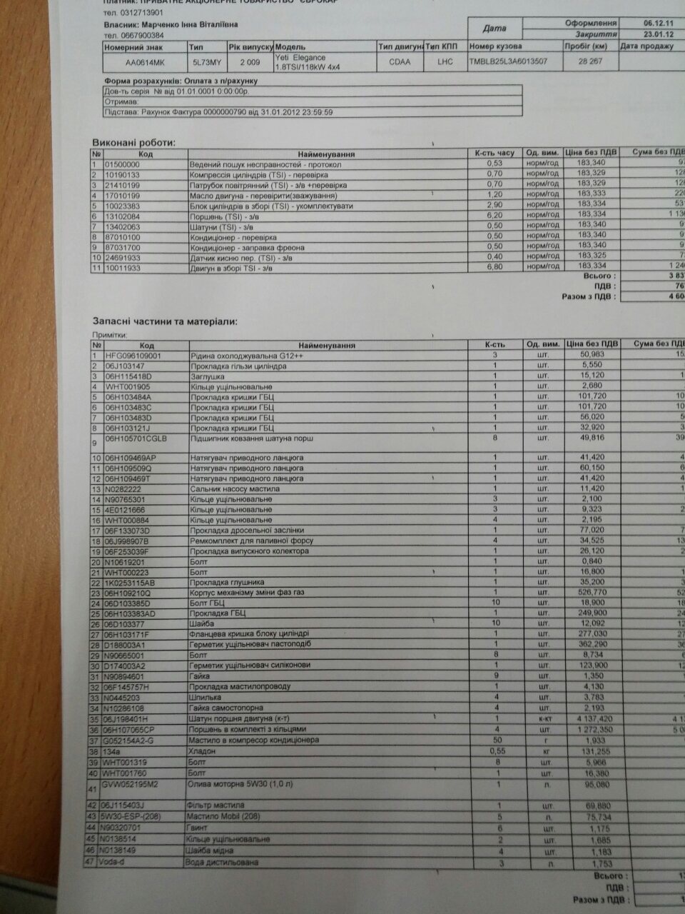 Отвезли ее на ВМС и сделали полную профилактику без втулок (они целы) — 1000 грн