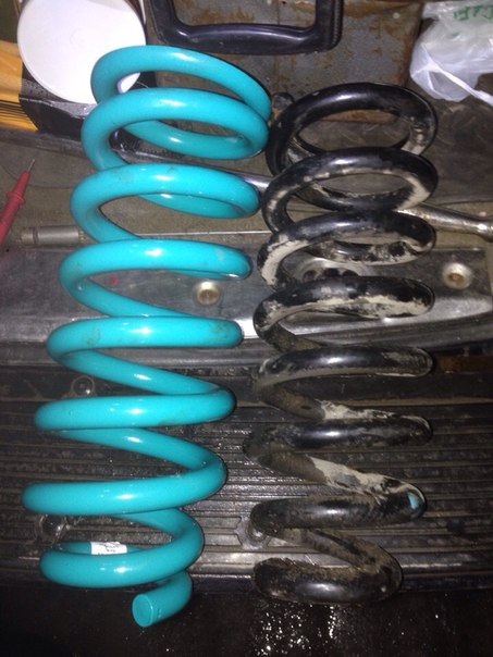 После первого съезда с асфальта было решено немного приподнять Сорьку и поставить побольше тапочки (остались от НИВЫ 32" Cooper`а, благо разболтовка одинаковая), были выбраны пружины Dobinson, отдельное спасибо stah2 за помощь в установке. В итоге машинка преобразилась)