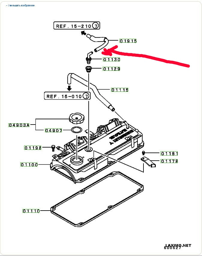 С мобилки стрелку не нарисовал.там ты не промажешь…в этом месте от единственный датчик.проверь еще проходимость трубки от клапанной крышки к коллектору в этом месте только чуть ниже датчика.может утебя трубка непроходима.