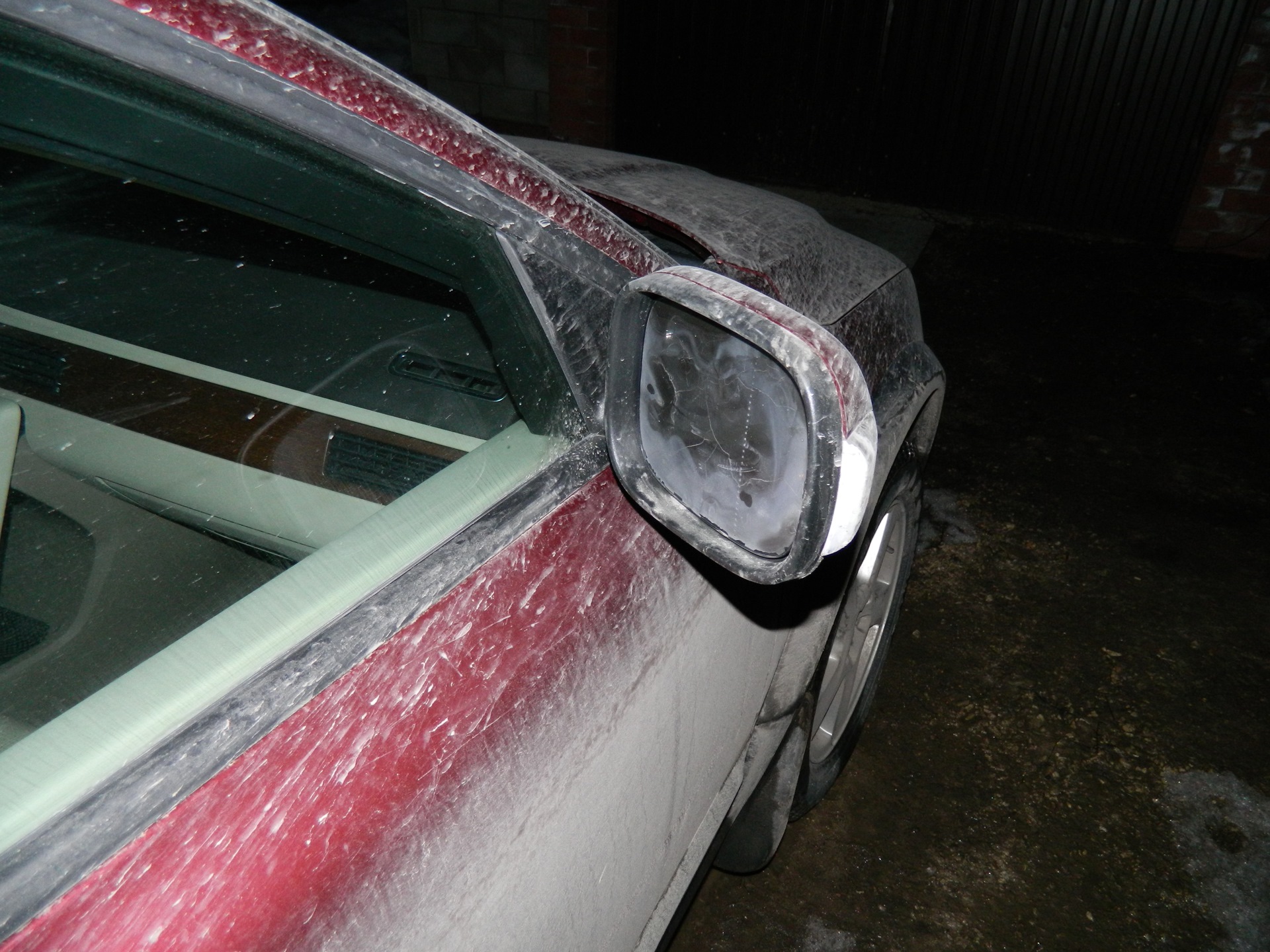 Сегодня с утра, когда прогревал машину перед поездкой на работу, решил протереть стёкла, фары и зеркала.