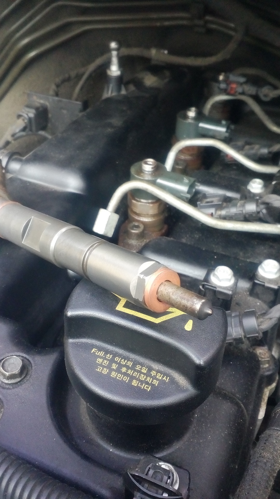 сначала думал вытаскивать по одной, попорядку, но не тут то было, вокруг форсунки скопилось много грязи из пыли, пришлось снимать полностью клапанную крышку и чистить от каки.