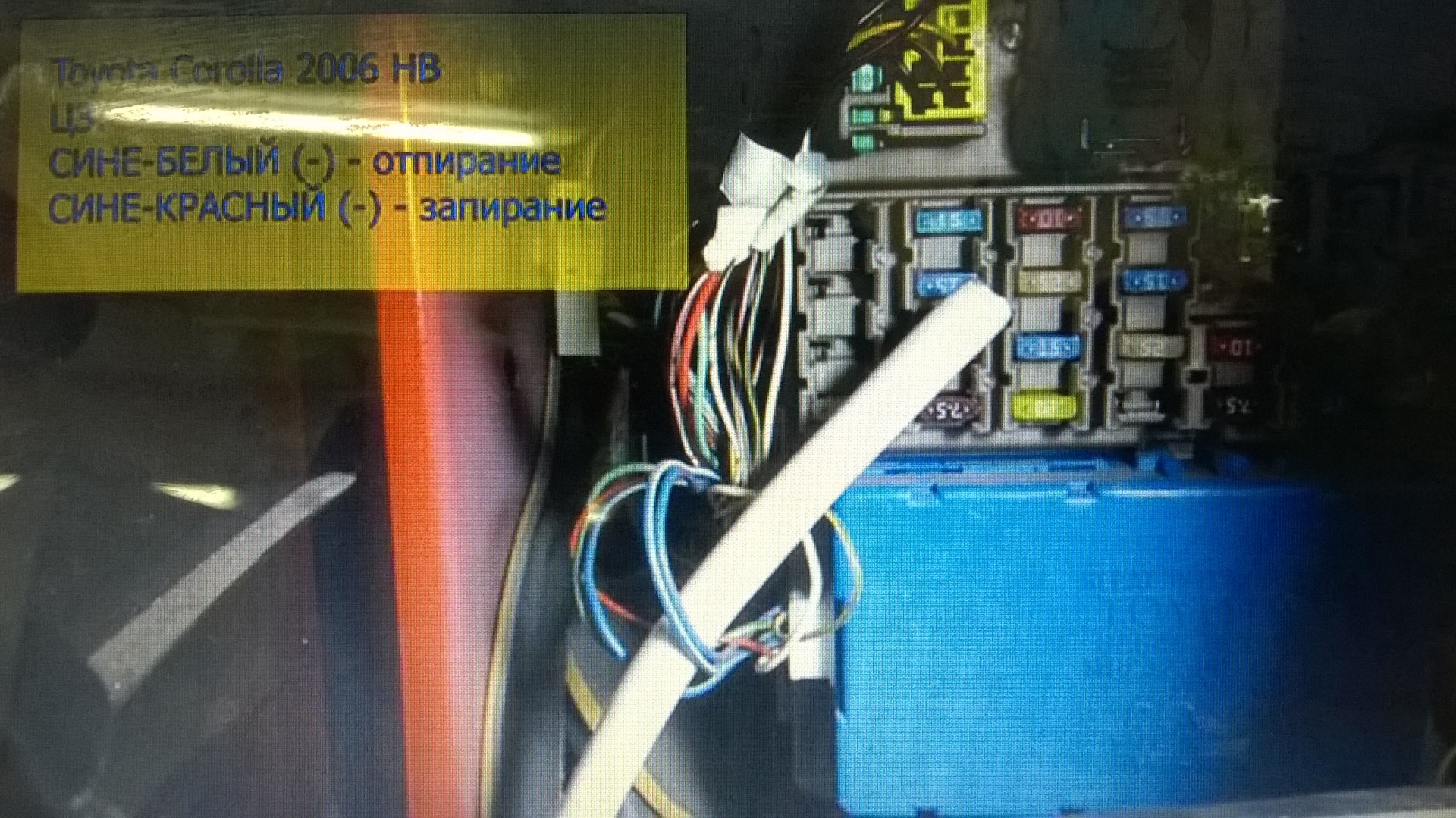 синий/красный (к положительному тригеру двери (+)) т.к. у меня сигнал тригера двери через минус. — демонтируем;