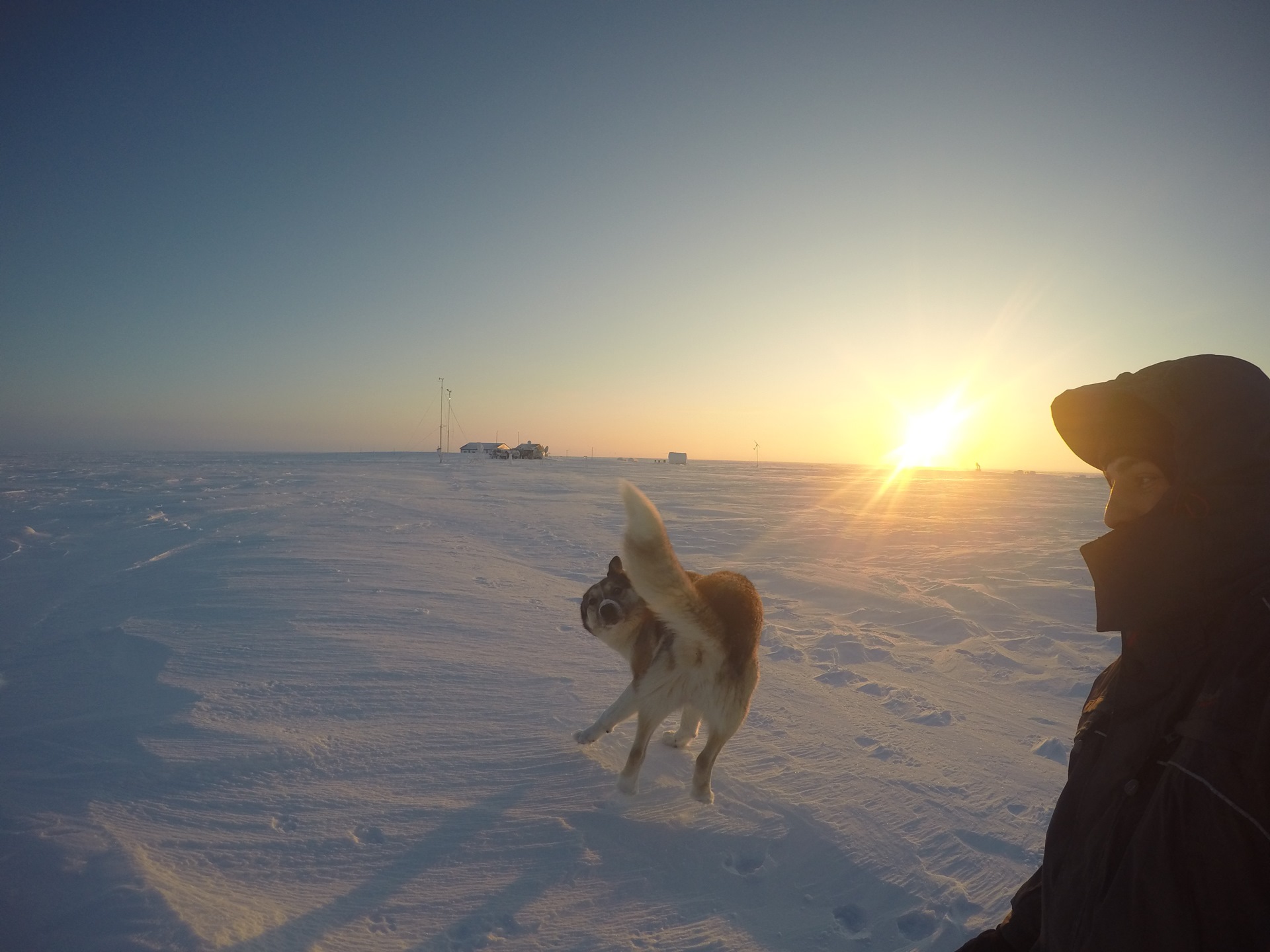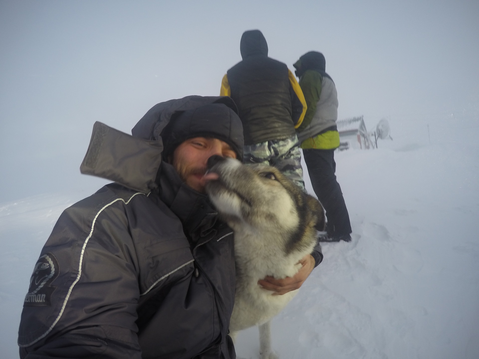 Мы прикинули и оказалось что от полярной станции он прошел за нами по следу 100 км… и судя по его морде назад он не собирался…Пришлось взять его на борт и везти до Салехарда.